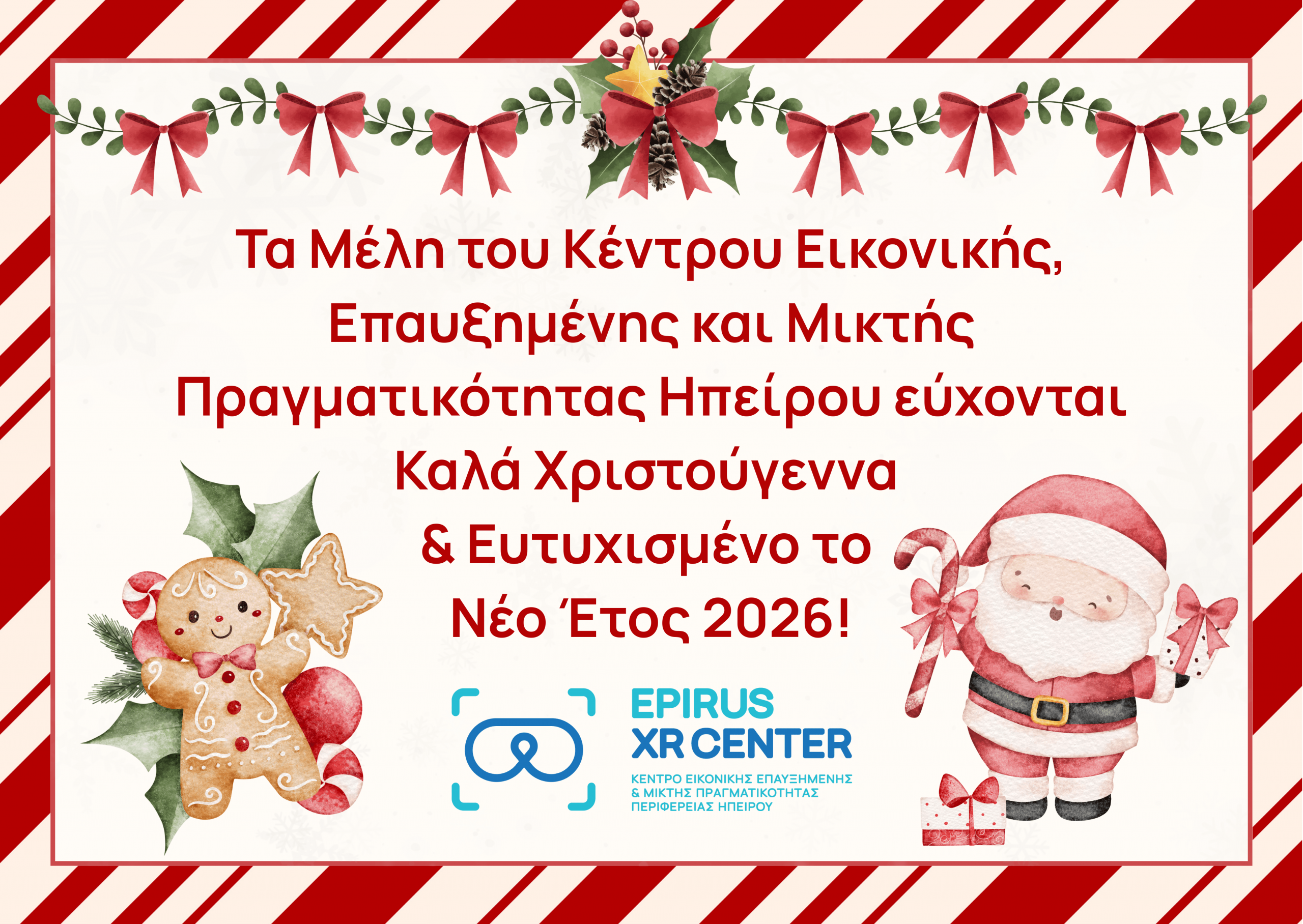 23 December, 2025 Anouncement Merry Christmas wishes from the Epirus Virtual, Augmented, and Mixed Reality Center – EpirusXRCenter Share Merry Christmas wishes from the Epirus Virtual, Augmented, and Mixed Reality Center...